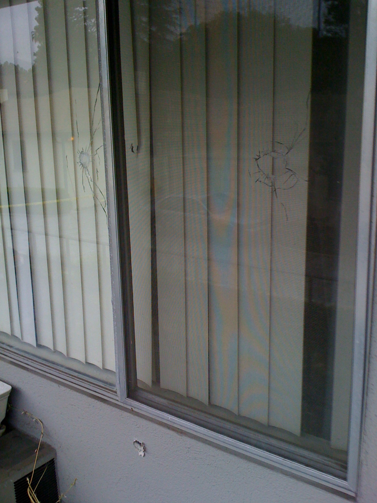 Someone standing in our community driveway had unloaded nine shots very directly into their apartment, hitting their outside wall, their air-conditioner unit and their window. While some bullets had been stopped outside, some of them had passed through. One of the roomates had been sitting in the living room when shots came tearing in from outside.