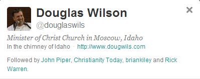 To support this claim J. Wilson quoted from a book, Fidelity: What it means to be a One Woman Man, by Douglas Wilson (no relation). D. Wilson is the Pastor of Christ Church in Moscow, ID and professor of Theology at New St. Andrew College.